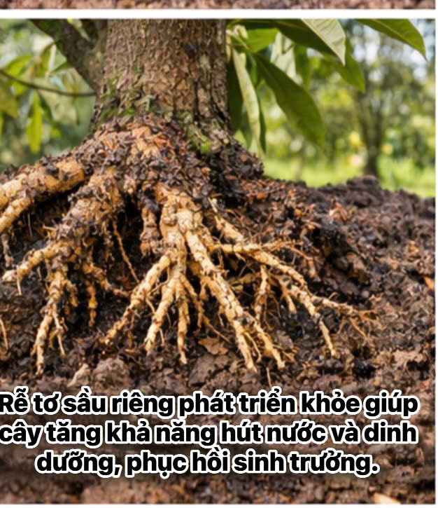 • Dọn sạch cỏ, xới nhẹ vùng tán rễ (không làm đứt rễ cái)